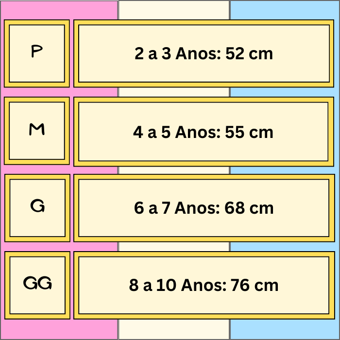 • Fechamento: Em elástico para se adequar a qualquer criança